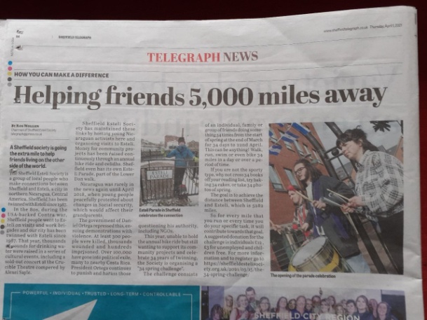 We are equally delighted that the Mayor of Estelí, the Nicaraguan Ambassador and the Lord Mayor of Sheffield will take part in the ceremony.